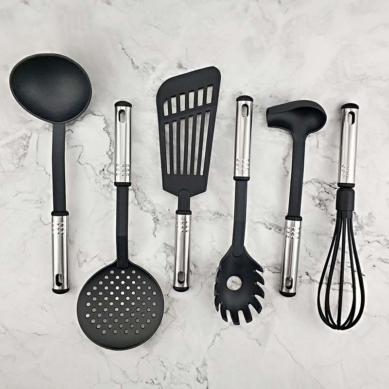 Product: Home Kitchen Utensils Set Material: Silicone+ Nylon+ Magnet Usage: Cooking Tools Color: Black Quantity: 6 pieces Feature: Eco-Friendly