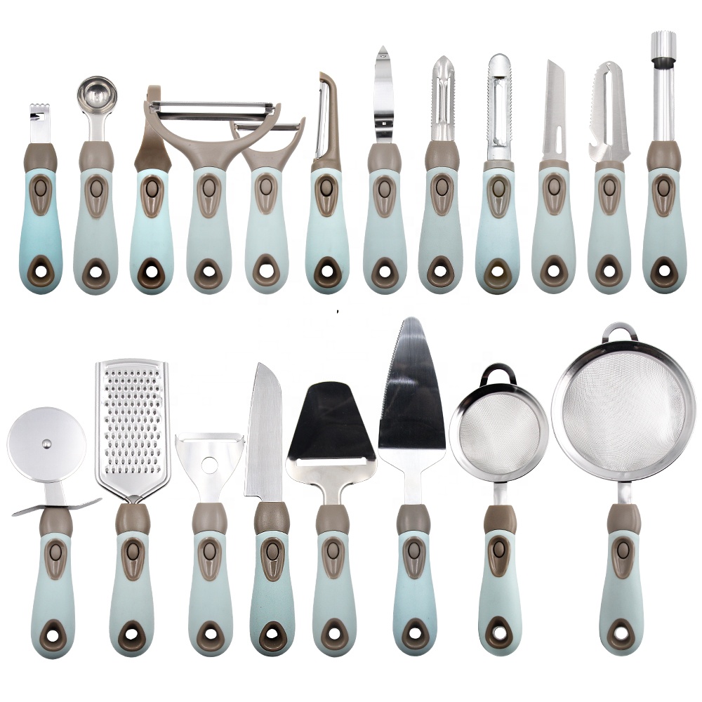 Product Name: Kitchen gadgets tools set Material: Metal Metal Type: SS+ PP+ TPR Feature: Eco-Friendly Usage: Kitchen Utensil Tools Product Quantity: 20 pieces